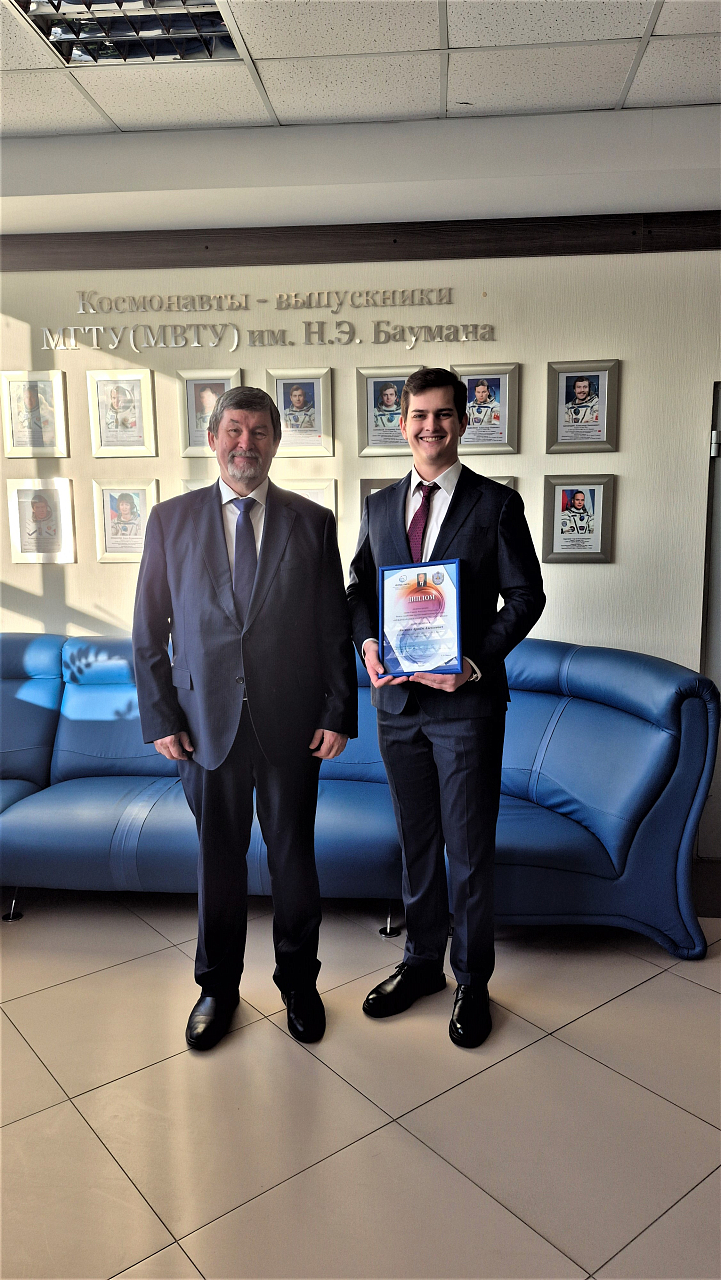 Премию имени Савина А.И. Фонда «МСБ» получил студент группы СМ4-91 кафедры СМ4 «Высокоточные летательные аппараты» Лисовол Артём Алексеевич по результатам учёбы и за курсовой проект «Влияние прочности при растяжении на параметры проникания кумулятивной струи в бетон».